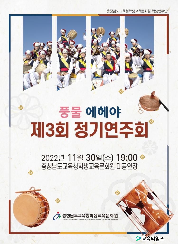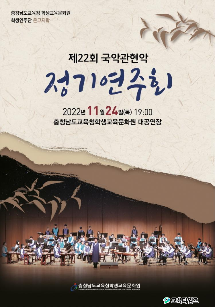 [±³À°Å¸ÀÓÁî/Ãæ³²] °Çö¼ö ±âÀÚ = ÃæÃ»³²µµ±³À°Ã»Çлý±³À°¹®È¿ø(¿øÀå ÀÌÇö¼·) Çлý¿¬ÁÖ´ÜÀº º»¿ø ¹®È¿¹¼ú°ü ´ë°ø¿¬Àå¿¡¼ ¿ÀÄɽºÆ®¶ó, ±¹¾Ç°üÇö¾Ç, dz¹° Á¤±â¿¬ÁÖȸ¸¦ °³ÃÖÇÑ´Ù. Á¦28ȸ ¿ÀÄɽºÆ®¶ó Á¤±â¿¬ÁÖȸ¸¦ 11¿ù 12ÀÏ(¿ÀÈÄ 3½Ã) ½ÃÀÛÀ¸·Î Á¦22ȸ ±¹¾Ç°üÇö¾ÇÀº 11¿ù 24ÀÏ(¿ÀÈÄ 7½Ã), Á¦3ȸ dz¹°Àº 11¿ù 30ÀÏ(¿ÀÈÄ 7½Ã) ¼øÀ¸·Î ¸·À» ¿¬´Ù.