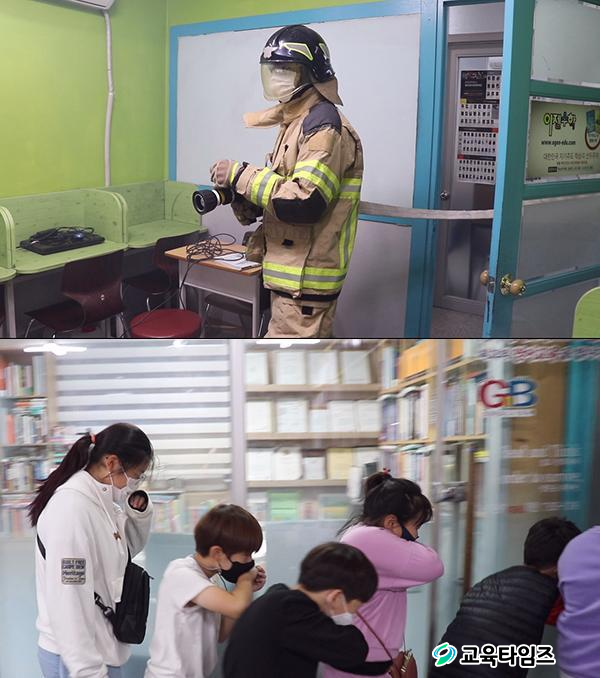 ¶Ç ¼Ãµ¼Ò¹æ¼¿Í Çù·ÂÇÏ¿© ¹ÐÆóµÈ °ø°£ÀÎ Çпø¿¡¼ ½ÇÁ¦·Î ÈÀç°¡ ¹ß»ýÇÑ »óȲÀ» °¡Á¤Çϰí, ´ëÇÇÈÆ·ÃÀ» ½Ç½ÃÇÏ¿© Çпø¿¡ ´Ù´Ï´Â °ü³» ÇлýµéÀÇ Àç³À§±â´ëÀÀ ´É·Â Çâ»ó¿¡ ±â¿©Çß´Ù.