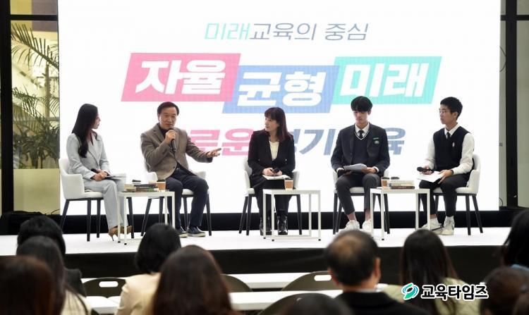 ÀÓÅÂÈñ ±³À°°¨ÀÌ 'ÇлýÀÌ ²Þ²Ù´Â ³»ÀÏ, ÇÔ²² ¸¸µå´Â °æ±â¹Ì·¡±³À°' °ø°¨ ÅäÅ©ÄܼƮ¿¡¼ Åä·ÐÀ» Çϰí ÀÖ´Ù. [»çÁøÁ¦°ø=°æ±âµµ±³À°Ã»]