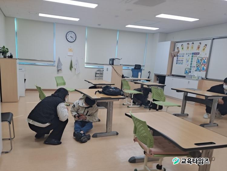 ´ëÇÇ ÈÆ·Ã Àü, ¹Ì¸® ¿µ»óÀ» ÅëÇØ ´ëÇÇÇÏ´Â ¹æ¹ý¿¡ ´ëÇÏ¿© ±³À°ÇÑ ÈÄ ÁöÁø ¹ß»ý °æº¸¿¡ ¹æ¼Û¿¡ µû¶ó ½Ç³»¿¡¼ Ã¥»ó ¾Æ·¡·Î ´ëÇÇÇÑ ÈÄ ºñ»ó°è´ÜÀ» ÀÌ¿ëÇØ °Ç¹° ¹Û ¿îµ¿ÀåÀ¸·Î ´ëÇÇÇß´Ù.