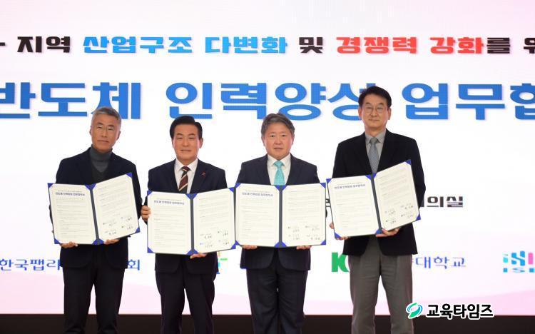 À̹ø Çù¾àÀº Áö³ 8¿ù ÀÌ·ïÁø ³í»ê½Ã¿Í °Ç¾ç´ë »çÀÌÀÇ ¡®¹ÝµµÃ¼ ºÐ¾ß Áö¿ªÀÎÀç ¾ç¼ºÀ» À§ÇÑ ¾÷¹«Çù¾à¡¯ÀÇ ÈÄ¼Ó Á¶Ä¡·Î ¸¶·ÃµÆ´Ù. ½Ã´Â Ãë¾÷ Áö¿ø°ú ±³À°½Ç½À ¿©°Ç °³¼±À» µÞ¹ÞħÇÒ ¡®Çѱ¹ÆÕ¸®½º»ê¾÷Çùȸ¡¯¿Í ¡®¹ÝµµÃ¼°øÇÐȸ¡¯¸¦ »ê¾÷±¸Á¶ Çõ½ÅÀÇ ÆÄÆ®³Ê·Î »ï¾Æ °ü-ÇÐ-±â¾÷ °£ °Å¹ö³Í½º ±¸Á¶¸¦ °ø°íÈ÷ ´ÙÁø´Ù´Â ¹æÄ§ÀÌ´Ù.