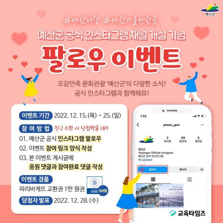 [±³À°Å¸ÀÓÁî/Ãæ³²] ±è¿µ¼ö ±âÀÚ = ¿¹»ê±ºÀº ÀÌ´Þ °ø½Ä ÀνºÅ¸±×·¥ ¡®yesan_gun¡¯ ä³ÎÀ» °³¼³ÇÔ¿¡ µû¶ó ¿À´Â 25ÀϱîÁö À̺¥Æ®¸¦ ÁøÇàÇÑ´Ù.