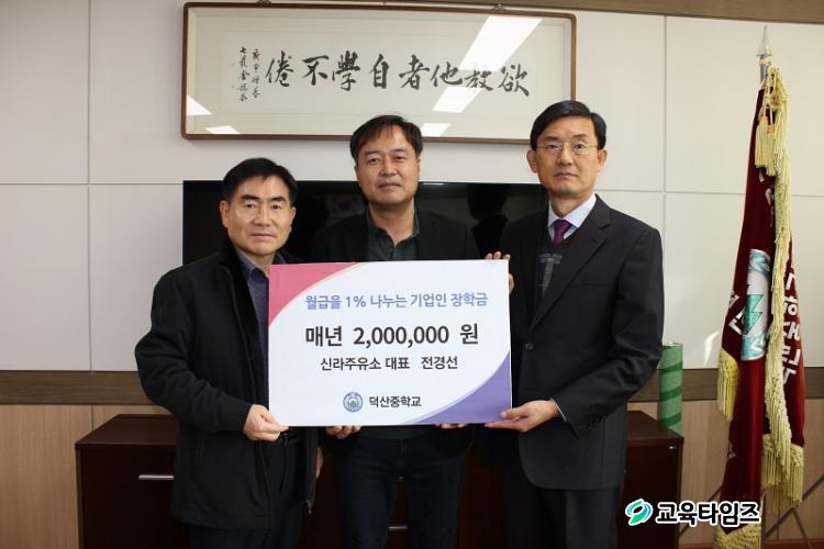 [±³À°Å¸ÀÓÁî/ÃæºÏ±³À°] À̺´Á¾ ±âÀÚ = 10ÀÏ ÃæºÏ ÁøÃµ±º ´ö»ê¸é¿¡ ¼ÒÀçÇÏ´Â Áö¿ª»çȸ ±â¾÷ ½Å¶óÁÖÀ¯¼Ò ´ëÇ¥ Àü°æ¼±Àº ¡®¿ù±ÞÀÇ 1% ³ª´©´Â ±â¾÷¡¯À̶õ µû¶æÇÑ ¸¶À½À¸·Î Áö¿ª»çȸÀÇ ´ö»êÁßÇб³ ÇлýµéÀÇ ÀåÇбÝÀ¸·Î ¸Å³â 2,000,000¿øÀ» ±âŹÇϱâ·Î ÇÏ¿´´Ù.