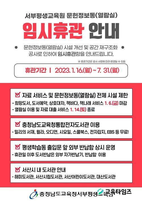[±³À°Å¸ÀÓÁî/Ãæ³²±³À°] ±è¿µ¼ö ±âÀÚ = ÃæÃ»³²µµ±³À°Ã»¼ºÎÆò»ý±³À°¿ø(¿øÀå ±è´ë¿µ)Àº ¿À´Â 16ÀϺÎÅÍ 7¿ù 31ÀϱîÁö ¾à 7°³¿ù°£ µµ¼°ü À籸Á¶È »ç¾÷À¸·Î ¹®ÇåÁ¤º¸µ¿(µµ¼°ü)À» Àӽà ÈÞ°üÇÑ´Ù°í 10ÀÏ ¹àÇû´Ù.