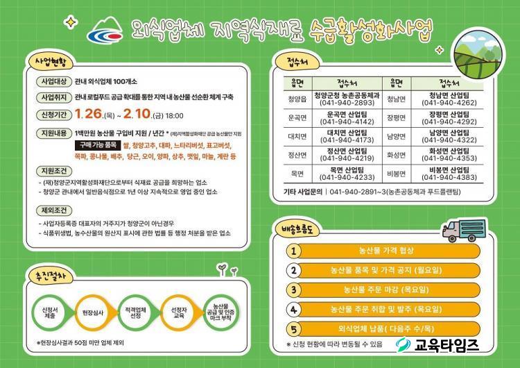 [±³À°Å¸ÀÓÁî/Ãæ³²] ÀåÀºÈñ ±âÀÚ = Áö³ÇØ 3¿ù ³ó¸²Ãà»ê½ÄǰºÎ ÁÖ°ü ¡®¿Ü½Ä¾÷ü Áö¿ª ½ÄÀç·á ¼ö±ÞȰ¼ºÈ»ç¾÷¡¯ °ø¸ð¿¡ ¼±Á¤µÈ û¾ç±º(±º¼ö ±èµ·°ï)ÀÌ ¿ÃÇØ¿¡µµ °°Àº »ç¾÷¿¡ Âü¿©ÇÒ ¿Ü½Ä¾÷ü¸¦ ¸ðÁýÇÑ´Ù.