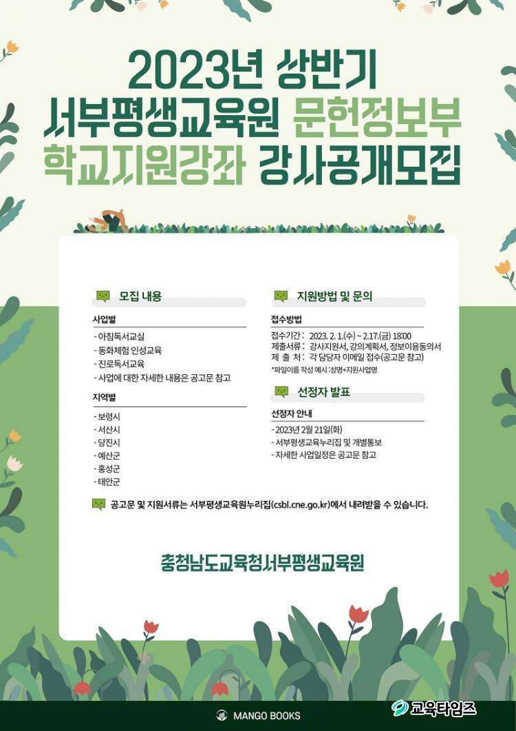 2023³â »ó¹Ý±â Çб³Áö¿ø°Á °»ç Æ÷½ºÅÍ [»çÁøÁ¦°ø=ÃæÃ»³²µµ±³À°Ã»¼ºÎÆò»ý±³À°¿ø]