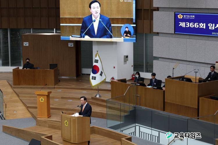 ÀÓÅÂÈñ ±³À°°¨ÀÌ °æ±âµµÀÇȸ º»È¸ÀÇÀå¿¡¼ ¿¸° ÀÓ½Ãȸ º»È¸ÀÇ¿¡ Âü¼®ÇØ 2023 °æ±â±³À° ¾÷¹«º¸°íÇϰí ÀÖ´Ù. [»çÁøÁ¦°ø=°æ±âµµ±³À°Ã»]