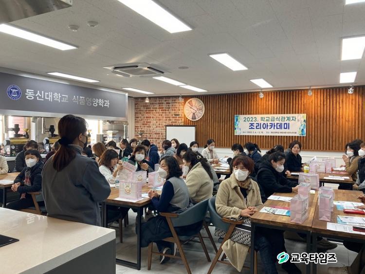 [±³À°Å¸ÀÓÁî/È£³²±³À°] Çϼº¸Å ±âÀÚ = Àü¶ó³²µµ±³À°Ã»(±³À°°¨ ±è´ëÁß)ÀÌ Áö³ 6ÀϺÎÅÍ ¿À´Â 10ÀϱîÁö Çб³±Þ½Ä °ü°èÀÚ(¿µ¾ç±³»ç, ¿µ¾ç»ç, Á¶¸®»ç, Á¶¸®½Ç¹«»ç) 175¸íÀ» ´ë»óÀ¸·Î µ¿½Å´ëÇб³ ÇØÀÎ4°ü¿¡¼ '2023. Çб³±Þ½Ä °ü°èÀÚ Á¶¸®¾ÆÄ«µ¥¹Ì ¿¬¼ö'¸¦ ½Ç½ÃÇÑ´Ù.