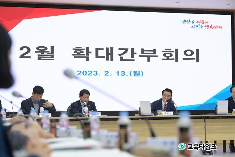 [±³À°Å¸ÀÓÁî/Ãæ³²] ÀåÀºÈñ ±âÀÚ = ³í»ê½Ã(½ÃÀå ¹é¼ºÇö)°¡ Áö³ 13ÀÏ ½Ãû ȸÀǽǿ¡¼¡®2¿ù È®´ë°£ºÎȸÀÇ¡¯¸¦ °³ÃÖÇϰí, ¡®2023³â ³í»êµþ±âÃàÁ¦¡¯ µî ÁÖ¿ä »ç¾÷ÀÇ ÃßÁø Àü·«À» °íµµÈÇß´Ù.