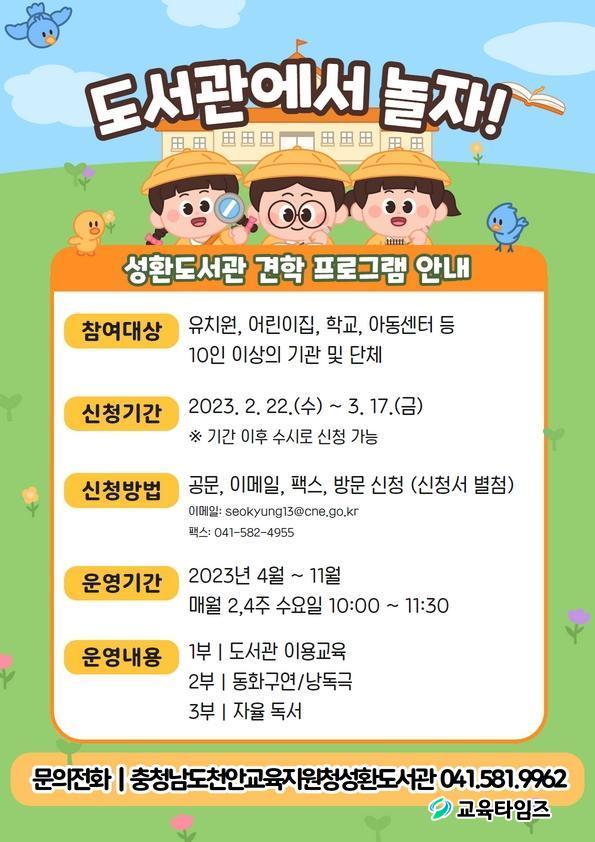 [±³À°Å¸ÀÓÁî/Ãæ³²±³À°] °Çö¼ö ±âÀÚ = õ¾È±³À°Áö¿øÃ»¼ºÈ¯µµ¼°ü(°üÀå ¹®Á¤¼÷)Àº 2¿ù 22ÀÏ(¼ö)ºÎÅÍ À¯¾Æ¡¤¾Æµ¿À» ´ë»óÀ¸·Î ÇÑ µµ¼°ü °ßÇÐ ÇÁ·Î±×·¥ Âü¿©±â°üÀ» ¸ðÁýÇÑ´Ù.