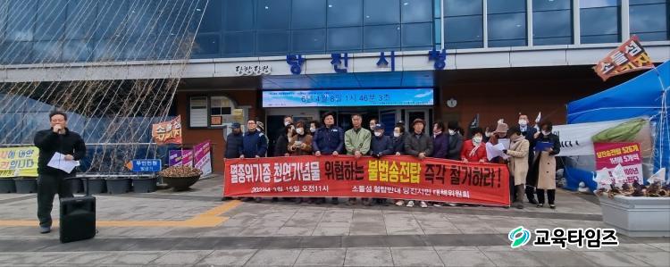 Ãæ³² ´çÁø½Ã ¼Òµé¼¶¼ÛÀüž¹Ý´ë½Ã¹Î´ëÃ¥À§(ÀÌÇÏ ½Ã¹Î´ëÃ¥À§)°¡ Áö³15ÀÏ ´çÁø½Ãû ¾Õ¿¡¼ ±âÀÚȸ°ßÀ» ¿°í, ÇÑÀüÀÇ Áï°¢ÀûÀÎ °ø»ç Áß´ÜÀ» Ã˱¸Çß´Ù. [»çÁøÁ¦°ø=´çÁø½ÃÃâÀÔ±âÀÚ´Ü]