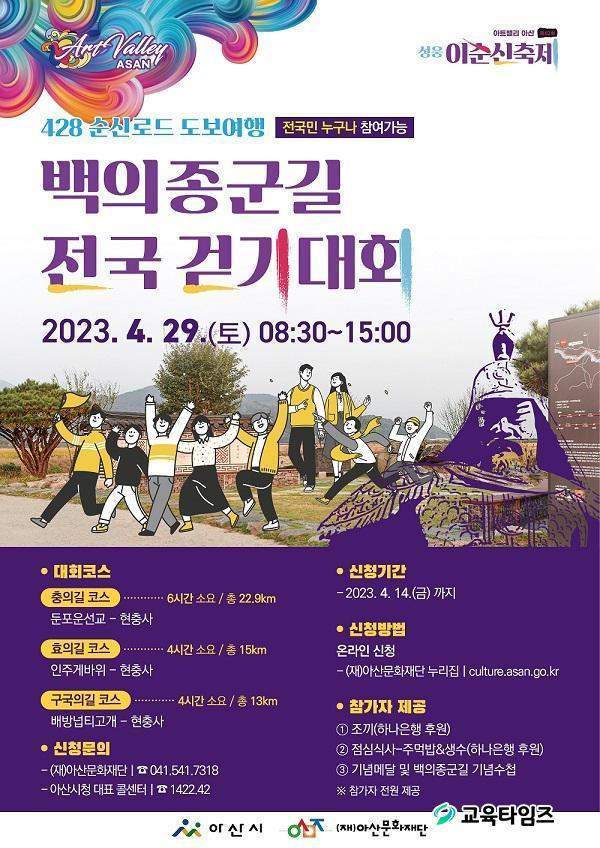 ¹éÀÇÁ¾±º ±æ¿¡ °ü½É ÀÖ´Â ½Ã¹Î ´©±¸³ª ½ÅûÇÒ ¼ö ÀÖÀ¸¸ç, ¿øÇÏ´Â ÄÚ½º¸¦ ¼±ÅÃÇØ ¾Æ»ê¹®ÈÀç´Ü ´©¸®Áý (https://culture.asan.go.kr)¿¡ 4¿ù 14ÀϱîÁö ½ÅûÇÏ¸é µÈ´Ù.