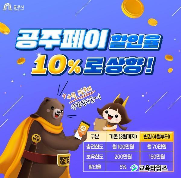 [±³À°Å¸ÀÓÁî/Ãæ³²] ÀåÀºÈñ ±âÀÚ = °øÁÖ½Ã(½ÃÀå ÃÖ¿øÃ¶)°¡ ¸ð¹ÙÀÏ Áö¿ªÈÆóÀÎ ¡®°øÁÖÆäÀÌ¡¯ÀÇ ÇÒÀÎÀ²À» 4¿ùºÎÅÍ 10% »óÇâÇÑ´Ù°í 28ÀÏ ¹àÇû´Ù.