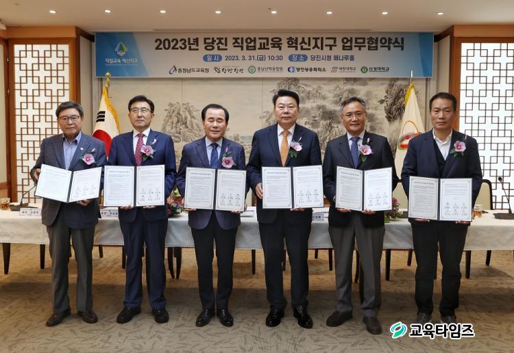 [±³À°Å¸ÀÓÁî/Ãæ³²] ÀåÀºÈñ ±âÀÚ = ´çÁø½Ã°¡ Áö¿ª »ê¾÷ÀÇ ¹ßÀüÀ» ¼±µµÇÒ °íÁ¹ ±â¼ú ÀÎÀ縦 ¾ç¼ºÇϰíÀÚ Ãæ³²±³À°Ã»-Ãæ³²»êÇÐÀ¶ÇÕ¿ø¡¤´çÁø»ó°øÈ¸ÀǼÒ, ¼¼ÇѴ롤½Å¼º´ë µî 5°³ ±â°ü°ú ÇÔ²² 31ÀÏ 2023³â ¡®Á÷¾÷±³À° Çõ½ÅÁö±¸¡¯ »ç¾÷ ¿î¿µÀ» À§ÇÑ ¾÷¹«Çù¾àÀ» ü°áÇß´Ù.