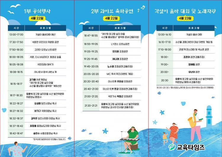 23ÀÏ Çà»ç·Î´Â °¢¼³ÀÌ Ç°¹Ù´ëȸ, ¼ö»ê¹°°æ¸Å, ¾î¸°ÀÌ À̺¥Æ® °ÔÀÓ, °ü±¤°´ ´í½º°æ¿¬´ëȸ ¹× »ö¼ÒÆù °ø¿¬, Á¶Àº¾Æ¡¤Á¤Çý¸²¡¤À¯³ÀÌ °ø¿¬ÀÌ ÁغñµÅ ÀÖ¾î À̰÷À» ã´Â Áֹΰú °ü±¤°´µé¿¡°Ô Áñ°Å¿òÀ» ¼±»çÇÑ´Ù.