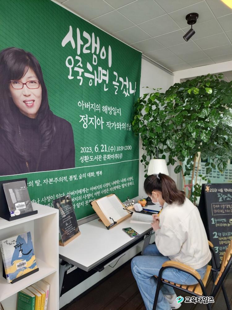 [±³À°Å¸ÀÓÁî/Ãæ³²±³À°] ¿ÀÁ¤ÀÏ ±âÀÚ = õ¾È±³À°Áö¿øÃ»¼ºÈ¯µµ¼°ü(°üÀå ¹®Á¤¼÷)Àº Ã¥À» ±í°Ô ÀÐÀ» ¼ö ÀÖ´Â ÇÊ»ç Äڳʸ¦ ¿î¿µ ÁßÀÌ´Ù. ¼ºÈ¯µµ¼°üÀ» ãÀº ÀÌ¿ëÀÚµéÀº ³²³à³ë¼Ò ÇÒ °Í ¾øÀÌ Á¤Áö¾Æ ÀÛ°¡ÀÇ <º½ºû>À» ¿Å°Ü ÀûÀ¸¸ç ´Ù°¡¿À´Â Á¤Áö¾Æ ÀÛ°¡¿ÍÀÇ ¸¸³²À» ±â´Ù¸®°í ÀÖ´Ù.