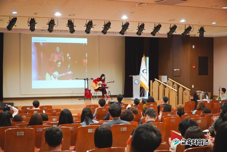 À̹ø °ø¿¬Àº ÁöÀûÀå¾Ö ±èÁöÈñ ±âŸ¸®½ºÆ®ÀÇ ¾Æ¸§´Ù¿î ±âŸ ¼±À²°ú ±×³àÀÇ ¾î¸Ó´Ï°¡ ÀüÇÏ´Â ½ºÅ丮ÅÚ¸µÀ¸·Î ÀÌ·ç¾îÁø ¡®Èñ¸Á ½ºÅ丮ÅÚ¸µ ÄܼƮ¡¯·Î ÁøÇàµÇ¾ú´Ù. À̸¦ ÅëÇØ õ¾È±³À°Áö¿øÃ» 230¿© ¸íÀÇ ±³Á÷¿øµéÀº Àå¾ÖÀΰú ºñÀå¾ÖÀÎ °£ÀÇ ±³·ù¿Í ¼ÒÅëÀ» °æÇèÇÏ´Â ¶æ±íÀº ½Ã°£À» º¸³¾ ¼ö ÀÖ¾ú´Ù.