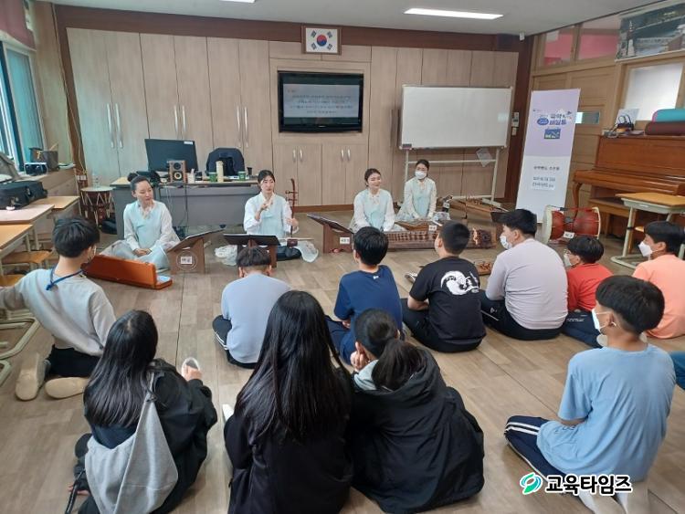 ±¹¾ÇÀü¹® ¿¬ÁÖÆÀ '±¹¾Ç¹êµå Á¶Àº¼Ö(´ëÇ¥ Á¤¿¬Èñ, 4¸í)'ÀÌ Çб³¿¡ ¹æ¹®ÇÏ¿© Àü±³»ý¿¡°Ô Çг⺰·Î 1½Ã°£¾¿ ±³½ÇÀ½¾Çȸ¸¦ ¿¾îÁá´Ù.