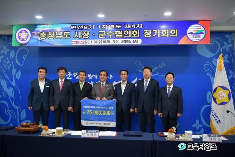 ¶ÇÇÑ È¸ÀÇ¿¡ ¾Õ¼ ´ëÇѹα¹½ÃÀ屺¼ö±¸Ã»ÀåÇùÀÇȸ¿¡¼ ÃÖ±Ù ´ëÇü »êºÒ·Î Ưº°Àç³Áö¿ªÀ¸·Î ¼±Æ÷µÈ È«¼º±º µî 5°³ ½Ã±º¿¡ °¢ 500¸¸¿øÀÇ ¼º±ÝÀ» Àü´ÞÇßÀ¸¸ç, º» ȸÀÇ¿¡¼µµ »êºÒÇÇÇØ Áö¿ªÀÇ Áö¿ø¿¡ ´ëÇÑ ¹æ¾ÈÀ» ³íÀÇÇß´Ù.