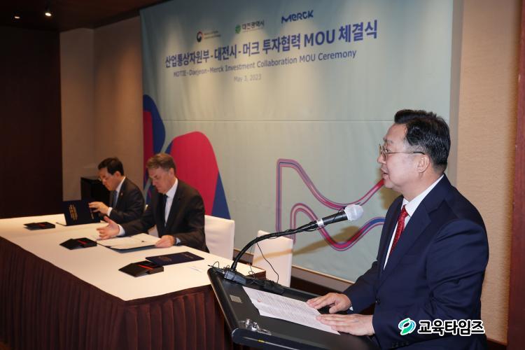 [±³À°Å¸ÀÓÁî/Ãæ³²] Á¤¹ÎÁØ ±âÀÚ = ´ëÀü½Ã(½ÃÀå ÀÌÀå¿ì)´Â 3ÀÏ ¿ÀÀü 9½Ã ¼¿ï ±×·£µå ÇÏ¾æÆ® È£ÅÚ¿¡¼ »ê¾÷Åë»óÀÚ¿øºÎ ¹× ±Û·Î¹ú °úÇбâ¼ú ¼±µµ±â¾÷ÀÎ ¸ÓÅ© ¶óÀÌÇÁ»çÀ̾ð½º(´ëÇ¥ ¸¶Æ¼¾Æ½º ÇÏÀÎÁ©)¿Í »õ·Î¿î ¾Æ½Ã¾ÆÅÂÆò¾ç ¹ÙÀÌ¿À °øÁ¤ ½Ã¼³À» Çѱ¹¿¡ ¼³¸³ÇÑ´Ù´Â ³»¿ëÀÇ ÅõÀÚ Çù·Â ¾çÇØ°¢¼(MOU)¸¦ ü°áÇß´Ù.