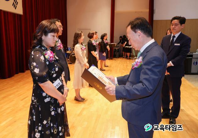 À̳¯ ±â³ä½Ä¿¡¼´Â ¼³µ¿È£ ´ëÀü±¤¿ª½Ã±³À°°¨À» ºñ·ÔÇØ À¯°ø ±³¿ø ¼ö»óÀÚ, ±³À°°¡Á· µîÀÌ ÇÔ²²ÇÑ °¡¿îµ¥, ±³À°ÇöÀå¿¡¼ Çå½ÅÇÏ°í ±³À°¹ßÀü¿¡ ±â¿©ÇÑ ±³¿øµéÀ» °Ý·ÁÇϰíÀÚ À¯°ø ±³¿ø 237¸í¿¡°Ô Á¤ºÎÆ÷»ó°ú ǥâÀ» ¼ö¿©Çß´Ù.
