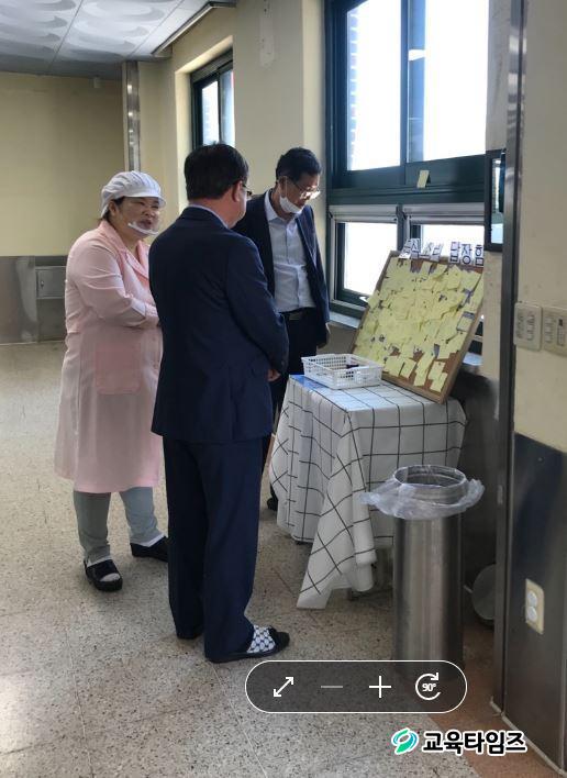 ±èÁ¾ÇÏ ±³À°ÀåÀº ¾ÆÀ̵éÀÌ ¸Ô´Â ±Þ½ÄÀ» °°ÀÌ ¸ÔÀ¸¸ç, Çб³±Þ½Ä °ü°èÀÚµéÀÇ ³ë°í¸¦ °Ý·ÁÇÏ°í ±Þ½ÄÀÇ ºÒÆí»çÇ×ÀÌ ¾ø´ÂÁö »ìÆìº¸¾Ò´Ù. ¾Æ¿ï·¯, Æò³â ´ëºñ ³ôÀº ±â¿ÂÀÌ ¿¹»óµÇ¾î ½ÄÁßµ¶ ¿¹¹æÀ» À§ÇØ Çб³±Þ½Ä À§»ý°ü¸®¿¡ ÁÖÀǸ¦ ´çºÎÇß´Ù.
