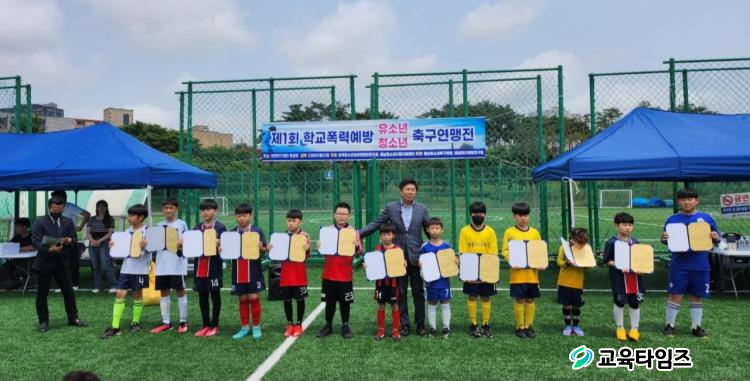 ¡®Á¦1ȸ Çб³Æø·Â¿¹¹æ À¯¼Ò³â¡¤Ã»¼Ò³â Ã౸¿¬¸ÍÀü¡¯ °³È¸½ÄÀ» ¸¶Ä¡°í ´Üü»çÁøÀ» Âï°í ÀÖ´Ù.