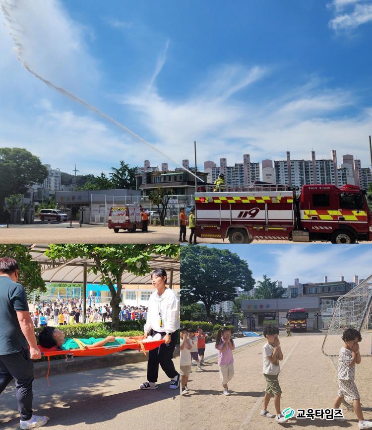 ÈÀç·Î ÀÎÇÑ ÀθíÇÇÇØ ÃÖ¼ÒÈ¿Í Ãʱ⠴ëÀÀ´É·Â °È¸¦ À§ÇØ ½Ç½ÃµÈ À̹ø ÈÆ·ÃÀº °¢ ±³½Ç¿¡¼´Â ´ãÀÓ±³»ç ÁÖ°üÀ¸·Î ÈÀç ´ëÇǰæ·Î¿Í ´ëÇÇÀå¼Ò, ´ëÇǹæ¹ýÀ» Ž»öÇÏ´Â ±³À°ÀÌ ÀÌ·ç¾îÁ³°í, ÈÀç°æº¸±â°¡ ÀÛµ¿ÇÏÀÚ Àü±³»ý°ú ±³Á÷¿øÀº ´ëÇǰæ·Î¸¦ µû¶ó ÀÏ»çºÒ¶õÇÏ°í ½Å¼ÓÇÏ°Ô ¿îµ¿ÀåÀ¸·Î ´ëÇÇÇß´Ù.