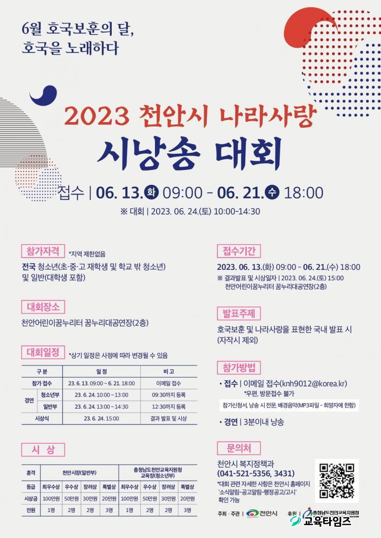 [±³À°Å¸ÀÓÁî/Ãæ³²] ±è¹ÌÁ¤ ±âÀÚ = õ¾È½Ã°¡ ÁÖÃÖÇϰí õ¾È±³À°Áö¿øÃ»ÀÌ ÈÄ¿øÇÏ´Â ¡®³ª¶ó»ç¶û ½Ã³¶¼Û ´ëȸ¡¯°¡ 6¿ù È£±¹º¸ÈÆÀÇ ´ÞÀ» ±â³äÇØ ¿¸°´Ù.
