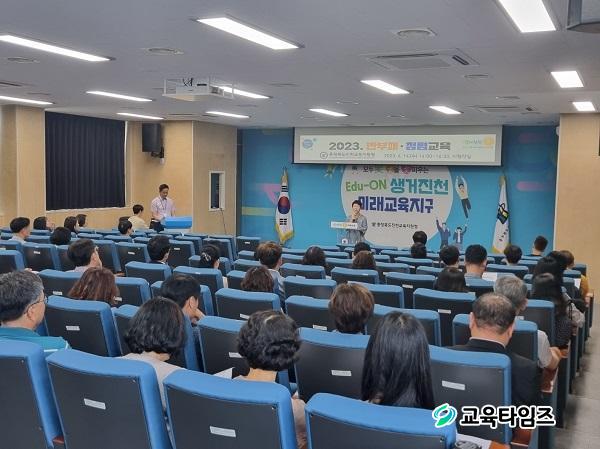 [±³À°Å¸ÀÓÁî/ÃæºÏ±³À°] À̺´Á¾ ±âÀÚ = ÁøÃµ±³À°Áö¿øÃ»(±³À°Àå ¿ÀÀºÁÖ)Àº Áö³ 7ÀÏ Çб³Áö¿ø¼¾ÅÍ 2Ãþ ½Ãû°¢½Ç¿¡¼ ÀüÁ÷¿ø ¹× °ü³» °¢±Þ Çб³ Çൿ°·ÉÃ¥ÀÓ°ü(±³°¨) ¹× ÇàÁ¤½ÇÀåÀ» ´ë»óÀ¸·Î 2023³â ¹ÝºÎÆÐ¡¤ û·Å±³À°À» ½Ç½ÃÇß´Ù.