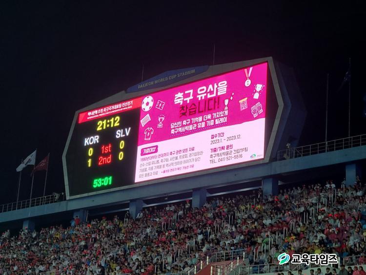 ¶Ç Áö³ 16Àϰú 20ÀÏ °¢°¢ ºÎ»ê¾Æ½Ã¾ÆµåÁÖ°æ±âÀå°ú ´ëÀü¿ùµåÄŰæ±âÀå¿¡¼ ÁøÇàµÈ Ã౸ ±¹°¡´ëÇ¥ Ä£¼±°æ±â¿¡¼µµ °æ±âÀå ³» Aº¸µå¿Í Àü±¤ÆÇÀ» ÅëÇØ Ã౸¿ª»ç¹Ú¹°°ü À¯¹° ±âÁõ È«º¸¸¦ ÁøÇàÇß´Ù. À¯¹° ±âÁõ È«º¸ À̹ÌÁö´Â Áß°è¹æ¼ÛÀ» ÅëÇØ Àü±¹¿¡ ¼ÛÃâµÇ±âµµ Çß´Ù.