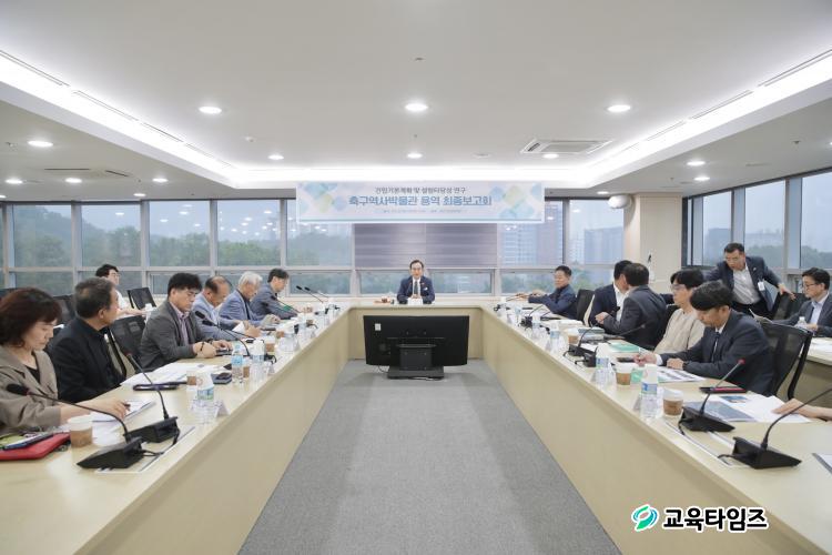 ÀϺ», Áß±¹ µî ÁÖº¯ ¾Æ½Ã¾Æ ±¹°¡´Â ¹Ú¹°°üÀ» °Ç¸³ÇØ ±¹°¡Àû Â÷¿ø¿¡¼ Ã౸ ¿ª»ç․À¯»êÀ» °ü¸®Çϰí ÀÖ´Ù. ¡®¾Æ½Ã¾ÆÀÇ È£¶ûÀÌ¡¯¶ó ºÒ¸®´Â Çѱ¹ Ã౸µµ Ã౸ À¯»êÀÇ ¸Á½Ç ¹æÁö¿Í ¿ª»ç ¼ÓÀ¸·Î »ç¶óÁö´Â Ã౸ ÀÌ¾ß±â ¹× Àι°ÀÇ ±â¾ï°ú Àü½ÂÀ» À§ÇØ Ã౸ Àü¹®¹Ú¹°°üÀÌ Àý½ÇÈ÷ ÇÊ¿äÇÏ´Ù. Ã౸¿ª»ç¹Ú¹°°ü °Ç¸³À» À§ÇÑ ÃÖÀûÀÇ µµ½ÃÀΠõ¾È½Ã´Â 2019³â ´ëÇѹα¹ Ã౸Á¾ÇÕ¼¾ÅÍ(NFC)¸¦ À¯Ä¡ÇÏ¸é¼ ±¹³» ÃÖ°íÀÇ Ã౸ ÀÎÇÁ¶ó¸¦ º¸À¯ÇÑ ¸í½Ç»óºÎÇÑ ¡®¹Ì·¡ Çѱ¹ Ã౸ÀÇ ¸ÞÄ«¡¯·Î °Åµì³ª°í ÀÖ´Ù.