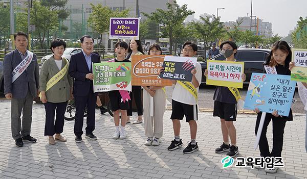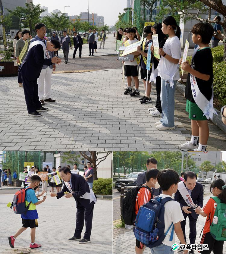 ±è ±³À°°¨Àº ³»Æ÷ÃʵîÇб³¿Í È«¼º±³À°Áö¿øÃ» ±³Á÷¿øµé°ú ÇÔ²² ±³¹®À» µé¾î¼´Â Çлý ÇÑ ¸í ÇÑ ¸í¿¡°Ô ¡°¿À´Ã ÇÏ·çµµ ÇູÇϼ¼¿ä.¡±, ¡°»ç¶ûÇÕ´Ï´Ù.¡±, ¡°¿äÁò ¸¹ÀÌ ÈûµéÁÒ? Èû³»¼¼¿ä!¡±µî µû¶æÇÑ ¸» ÇѸ¶µð¸¦ °Ç³Þ´Ù.