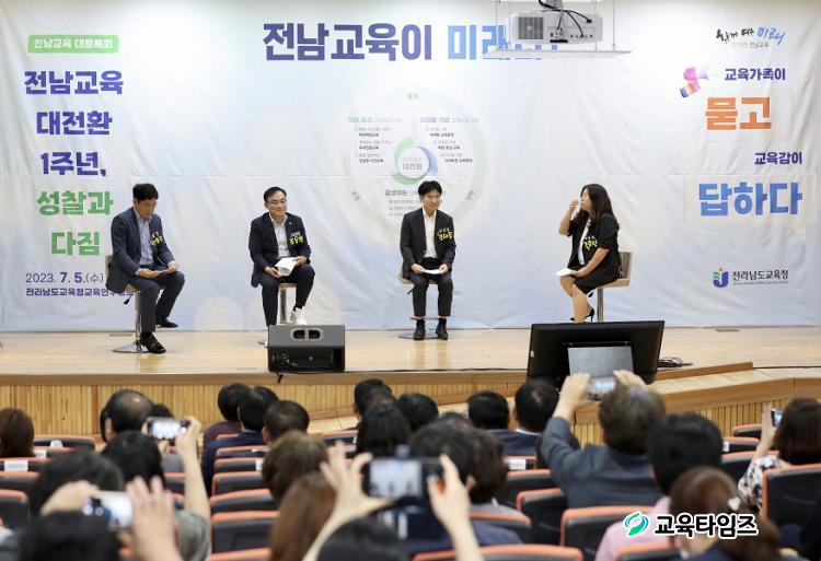 Àü¶ó³²µµ±³À°Ã»(±³À°°¨ ±è´ëÁß)ÀÌ ÁÖ¹ÎÁ÷¼± 4±â ±è´ëÁß ±³À°°¨ ÃëÀÓ 1ÁÖ³âÀ» ¸Â¾Æ 5ÀÏ Àü¶ó³²µµ±³À°Ã»±³À°¿¬±¸Á¤º¸¿ø¿¡¼ ¸¶·ÃÇÑ 'Àü³²±³À° ´ëÅä·Ðȸ' Âü¿©ÀÚµéÀº Àü³²±³À° ´ëÀüȯ Á¤Ã¥ ½ÇÇö °úÁ¤¿¡¼ ±³À°°øµ¿Ã¼µéÀÇ ÀÇ°ß ¼ö·Å°ú ¹Ý¿µÀÌ Áß¿äÇÏ´Ù´Â µ¥ ÇѸñ¼Ò¸®¸¦ ³Â´Ù.
