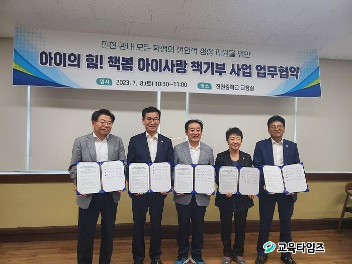 [±³À°Å¸ÀÓÁî/ÃæºÏ±³À°] À̺´Á¾ ±âÀÚ = ÃæÃ»ºÏµµÁøÃµ±³À°Áö¿øÃ»(±³À°Àå ¿ÀÀºÁÖ)Àº Áö³ 8ÀÏ ¿ÀÀü 10½Ã 30ºÐ ÁøÃµÁßÇб³¿¡¼ '¾ÆÀÌÀÇ Èû! Ã¥º½ ¾ÆÀÌ»ç¶û Ã¥±âºÎ »ç¾÷' ÃßÁø Ȱ¼ºÈ¸¦ À§ÇØ À±°Ç¿µ ÃæÃ»ºÏµµ±³À°°¨ÀÌ Âü¼®ÇÑ °¡¿îµ¥ ÁøÃµ±º, ÁøÃµ»ó°øÈ¸ÀǼÒ, ÁøÃµ±º ±â¾÷ÀÎÇùȸ¿Í ¾÷¹«Çù¾àÀ» ü°áÇß´Ù.