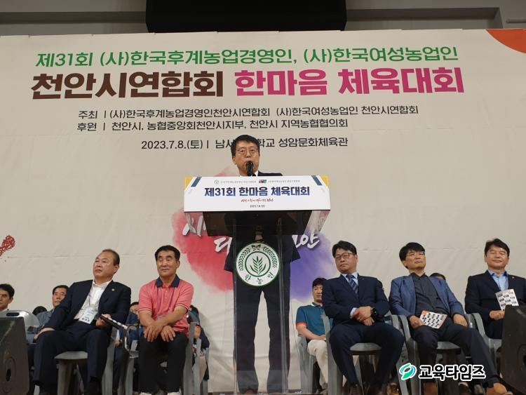 Á¦31ȸ õ¾È½Ã ³ó¾÷°æ¿µÀÎ ÇѸ¶À½ üÀ°´ëȸ¿¡¼ ÀÌÁ¾´ã õ¾È½ÃÀÇȸ ºÎÀÇÀåÀÌ Ãà»ç¸¦ Çϰí ÀÖ´Ù.