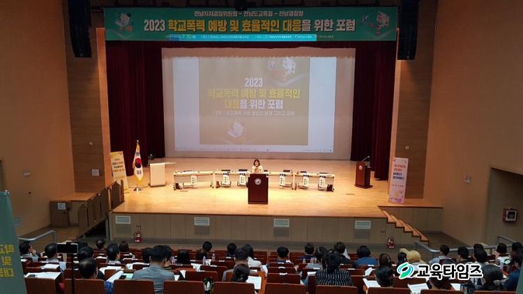 Àü¶ó³²µµ±³À°Ã»(±³À°°¨ ±è´ëÁß)ÀÌ Àü³²ÀÚÄ¡°æÂûÀ§¿øÈ¸-Àü¶ó³²µµ°æÂûû°ú ÇÔ²² ¸¶·ÃÇÑ ÀÌ Æ÷·³¿¡´Â Çлý, Çкθð, ±³»ç, Çб³Àü´ã°æÂû°ü, û¼Ò³â »ó´ãº¹Áö¼¾ÅÍ, Áö¿ª¹Î µî 120¿© ¸íÀÌ Âü¼®ÇØ ¿¶í Åä·ÐÀ» ¹ú¿´´Ù. À̹ø Æ÷·³Àº ±³À°°øµ¿Ã¼¿Í À¯°ü±â°üÀÌ »ýȰ ¼Ó¿¡¼ °í¹ÎÇϰí ÀÖ´Â Çб³Æø·Â¿¡ ´ëÇÑ ÀǰßÀ» °øÀ¯ÇÏ°í ¾ÕÀ¸·ÎÀÇ Á¤Ã¥ ¹æÇâ¿¡ ´ëÇØ ÇÔ²² °í¹ÎÇÏ´Â ÀÚ¸®·Î ÇöÀåÀÇ ´Ù¾çÇÑ ¸ñ¼Ò¸®°¡ ¼ö·ÅµÆ´Ù.
