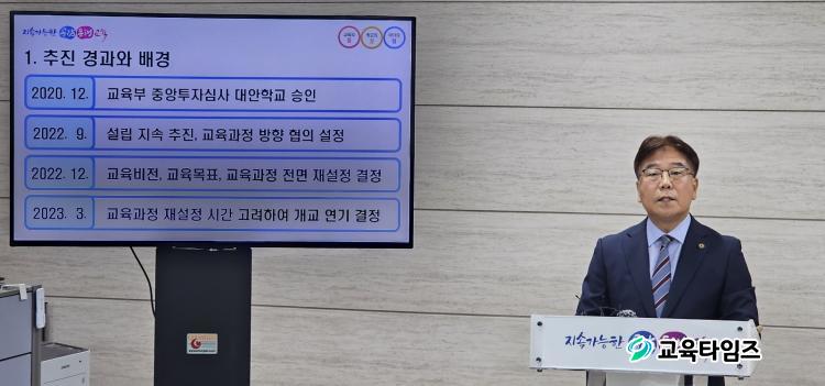 ÇÏÁö¸¸, Áö³ÇØ 12¿ù ±×µ¿¾È ÁغñÇØ¿Ô´ø ±³À°°úÁ¤ÀÇ ±¸Ã¼¼º°ú ½ÇÇö¼ºÀÌ ºÎÁ·ÇÏ´Ù°í ÆÇ´ÜÇÑ µµ±³À°Ã»Àº ±³À°ºñÀü, ¸ñÇ¥, ±³À°°úÁ¤ Àç¼³Á¤À» °áÁ¤Çϰí, ¿ÃÇØ 3¿ù ±³À°°úÁ¤ µîÀ» Àç¼³Á¤Çϱâ À§ÇØ 2025³âÀ¸·Î °³±³¸¦ 1³â ¿¬±âÇÏ°Ô µÇ¾ú´Ù.
