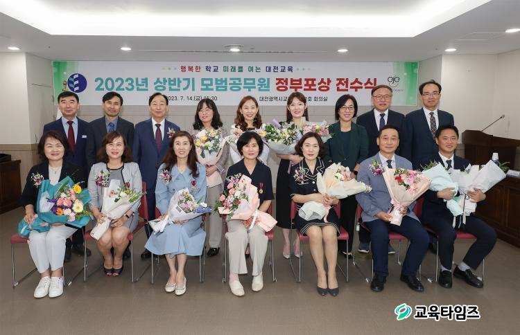 [±³À°Å¸ÀÓÁî/´ëÀü±³À°] Á¤¹ÎÁØ ±âÀÚ = ´ëÀü±¤¿ª½Ã±³À°Ã»(±³À°°¨ ¼³µ¿È£)Àº Áö³ 14ÀÏ ¿ÀÈÄ 15½Ã 30ºÐºÎÅÍ 701È£½Ç¿¡¼ Æ÷»ó´ë»óÀÚ °¡Á·°ú ±³À° °ü°èÀÚµéÀÌ Âü¼®ÇÑ °¡¿îµ¥ 2023³âµµ »ó¹Ý±â ¸ð¹ü°ø¹«¿ø Á¤ºÎÆ÷»ó Àü¼ö½ÄÀ» ½Ç½ÃÇß´Ù.