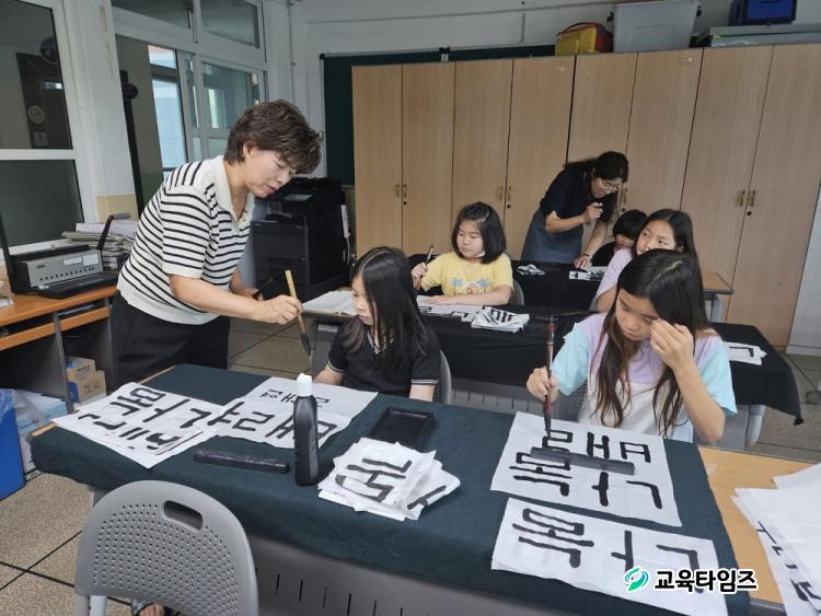 ¹éÁ¤Çö ±³À°ÀåÀº ¡°º×À¸·Î ÇÑ ±ÛÀÚ ÇÑ ±ÛÀÚ ½á ³»·Á°¡´Ù º¸¸é ¸¶À½µµ Â÷ºÐÇØÁö°í ±Û¾¾¿¡ ¿À·ÔÀÌ ÁýÁßÇÏ°Ô µÇ´Ï ÇлýµéÀÌ ÂüÀ»¼º°ú Àγ»½É, ÁýÁß·Â µî Àμº±³À°ÀÌ ÀúÀý·Î ÇÔ¾çµÇ¾î ±³À°Àû È¿°ú°¡ ¸Å¿ì Å©´Ù. °ü³» Çб³¿¡¼ ¼¿¹ ¼ö¾÷¿¡ ´ëÇÑ °ü½É°ú Âü¿©µµ°¡ Á¡Á¡ ³ô¾ÆÁö°í ÀÖÀ¸À¸¹Ç·Î 2Çб⿡µµ Áö¼ÓÀûÀ¸·Î Áö¿øÀ» ¾Æ³¢Áö ¾Ê°Ú´Ù¡±¶ó°í ¸»Çß´Ù.