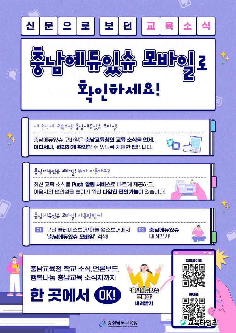 ¡®Ãæ³²¿¡µàÀÖ½´¡¯´Â ±³À°Ã»°ú ±³À°Ã» ¼Ò¼Ó ±â°ü, Çб³ÀÇ ¡â±³À° ¼Ò½Ä ¡â°¢Á¾ ¾ð·Ð º¸µµ ³»¿ë ¡âÃæ³²±³À° ¼Ò½ÄÁö µîÀ» Àü´ÞÇÏ´Â ´©¸®ÁýÀÌ´Ù. ±âÁ¸¿¡´Â ÇØ´ç Á¤º¸¸¦ ÀÎÅÍ³Ý ´©¸®ÁýÀ» ÅëÇØ¼¸¸ È®ÀÎÇÒ ¼ö ÀÖ¾úÁö¸¸, ÀÌÁ¦´Â ¾ðÁ¦ ¾îµð¼µç ´©±¸³ª Æí¸®ÇÏ°Ô Á¢±ÙÇÒ ¼ö ÀÖµµ·Ï ¸ð¹ÙÀÏ ¾ÛÀ» °³¹ßÇß´Ù.
