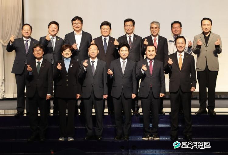 Àü±¹ ½Ã.µµ ±³À°°¨µéÀÌ °£´ãȸ¸¦ ¸¶Ä¡°í ÆÄÀÌÆÃÀ» ¿ÜÄ¡¸ç ±â³ä»çÁø ÃÔ¿µÀ» Çϰí ÀÖ´Ù. [»çÁøÁ¦°ø=Àü³²±³À°Ã»]