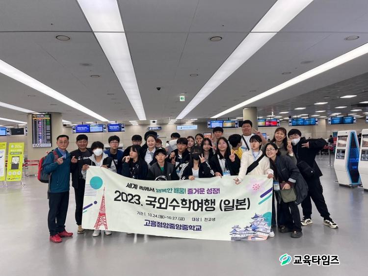 °íÈïÁ¡¾ÏÁß¾ÓÁßÇб³ ÇØ¿ÜüÇèÇнÀÀ» À§ÇÑ Ãâ±¹Àü °øÇ׿¡¼ ±â³ä ÃÔ¿µÀ» Çϰí ÀÖ´Ù. [»çÁøÁ¦°ø=Àü³²±³À°Ã»]