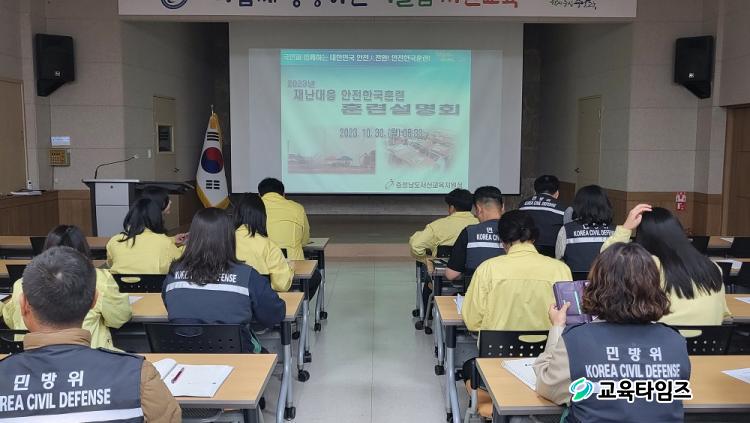 [±³À°Å¸ÀÓÁî/Ãæ³²±³À°] ¹Ú¿ÁºÐ ±âÀÚ = ÃæÃ»³²µµ¼»ê±³À°Áö¿øÃ»(±³À°Àå ÀÌ¿ÏÅÃ)Àº 30ÀÏ ¿ÀÀü 8½Ã30ºÐÀ» ±âÇØ ¡®2023 Àç³´ëÀÀ ¾ÈÀüÇѱ¹ÈÆ·Ã ÀÏÁ¤¿¡ º»°Ý µ¹ÀÔÇß´Ù.