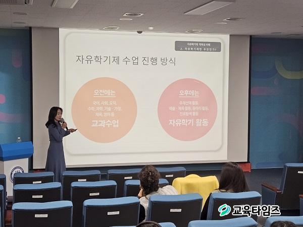 ÁßÇб³ ÀÔÇÐ Àü ÃʵîÇб³ 5¡¤6Çгâ Çкθ𸦠´ë»óÀ¸·Î ÇÑ À̹ø ¿¬¼ö´Â ÁøÃµ¿©ÀÚÁßÇб³ ¹ÚÃÊÈñ ÀÚÀ¯ÇбâÁ¦ ´ã´ç ±³»ç¸¦ °»ç·Î ÃÊÃ»ÇØ ÀÚÀ¯ÇбâÁ¦ÀÇ Çʿ伺, ÀÚÀ¯ÇбâÁ¦ÀÇ ÀǹÌ, ÀÚÀ¯ÇбâÁ¦ ¿î¿µÀÇ ½ÇÁ¦¸¦ ÁÖÁ¦·Î ¿¬¼ö°¡ ÁøÇàµÇ¾ú´Ù.