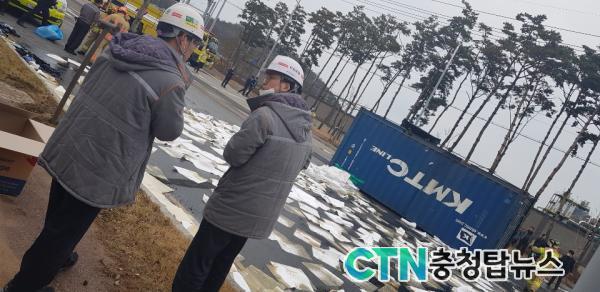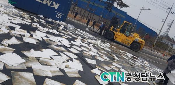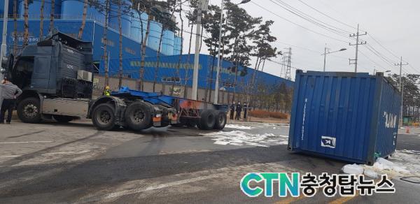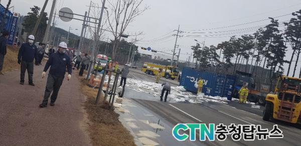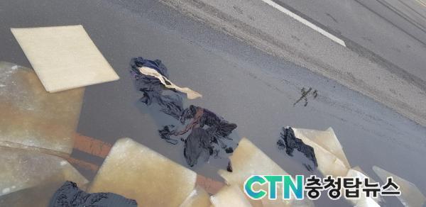 [ÃæÃ»±³À°½Å¹® = °¡±ÝÇö ±âÀÚ] ÇÑÈÅäÅ»ÀÇ Anysol-D100(¿ëÁ¦ 7È£)¸¦ ¿î¹ÝÇÏ´Â ÅÊÅ©·Î¸® Â÷·®ÀÌ 21ÀÏ ¿ÀÈÄ 3½Ã°æ ´ë»êÀ¾ ´ëÁ׸® ÄÚ¿À·ÕÀδõ½ºÆ¼¸® ¾Õ µµ·Î¿¡¼ Àüº¹»ç°í·Î ÅÊÅ©°¡ ÆÄ¼ÕµÅ ÀûÀçµÇ¾ú´ø Àü·®ÀÇ ¾×ü·ù°¡ µµ·Î¸¦ µÚµ¤´Â »ç°í°¡ ¹ß»ýÇß´Ù.