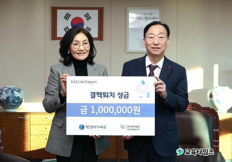 [±³À°Å¸ÀÓÁî/´ëÀü±³À°] Á¤¹ÎÁØ ±âÀÚ = ´ëÀü±¤¿ª½Ã±³À°Ã»(±³À°°¨ ¼³µ¿È£)Àº 1ÀÏ ´ëÇѰáÇÙÇùȸ ´ëÀü¤ý¼¼Á¾¤ýÃæ³²ÁöºÎ(ȸÀå ³²»óÇö)·ÎºÎÅÍ Å©¸®½º¸¶½º ¾ÁÀ» ÁõÁ¤¹Þ°í, °áÇÙÅðÄ¡¸¦ À§ÇÑ ¼º±Ý 100¸¸¿øÀ» Àü´ÞÇß´Ù°í ¹àÇû´Ù.