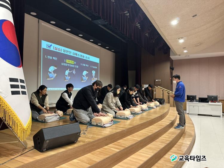 À̹ø ¿¬¼ö´Â 2023³â õ¾È °ü³»ÀÇ ÇлýÀ» ´ë¸éÇÏ´Â ±³Á÷¿øµé Áß ÃâÀå µîÀ¸·Î ÀÚü ¿¬¼ö¸¦ ¹ÞÁö ¸øÇÑ 280¿©¸íÀ» ´ë»óÀ¸·Î ½ÉÆó¼Ò»ý¼ú ½ÃÇà ¼ø¼ ¹× ½Ç½À, ¿¬·Éº° ½ÉÆó¼Ò»ý¼ú ¹æ¹ý, ÀÚµ¿½ÉÀåÃæ°Ý±â(AED) »ç¿ë¹ý ¹× ½Ç½À µî 1:1 °³º° ½Ç½À À§ÁÖÀÇ ¿¬¼ö·Î ÁøÇàµÇ¾ú´Ù.