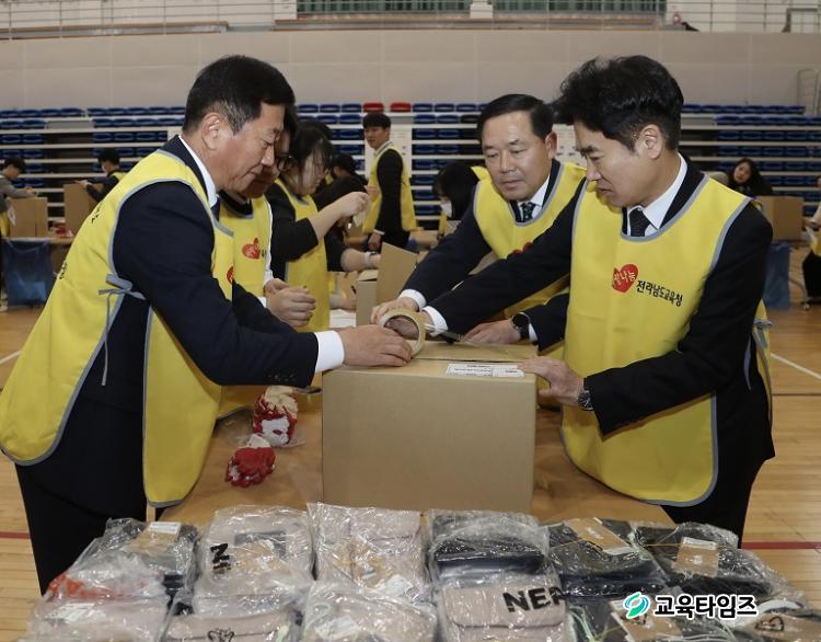 ±è´ëÁß ±³À°°¨À» ºñ·ÔÇÑ µµ±³À°Ã» °£ºÎ, Á÷¿øµéÀÌ µµ³» Çлý °¡Àå ¹× À§Å¹°¡Àå Çлý¿¡°Ô Àü´ÞÇÒ ¼±¹°À» Æ÷ÀåÇϰí ÀÖ´Ù. [»çÁøÁ¦°ø=Àü³²±³À°Ã»]