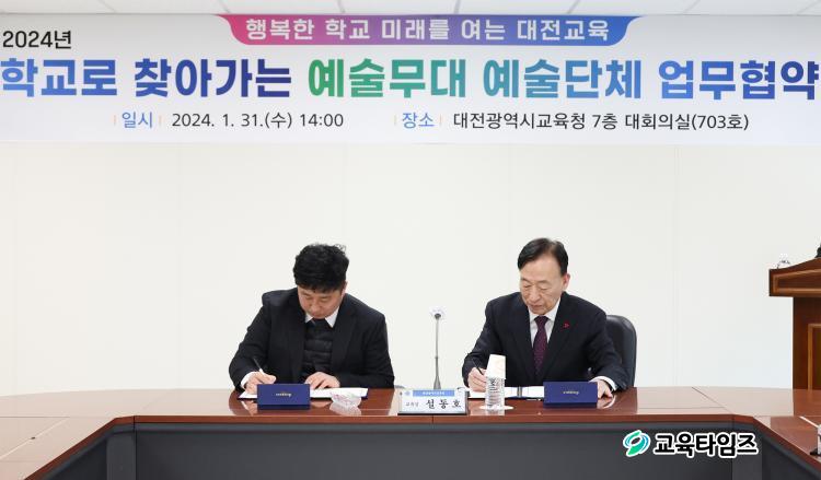 [±³À°Å¸ÀÓÁî/´ëÀü±³À°] Á¤¹ÎÁØ ±âÀÚ = ´ëÀü±¤¿ª½Ã±³À°Ã»(±³À°°¨ ¼³µ¿È£)Àº 31ÀÏ ´ëÀüÁö¿ª 20°³ ¿¹¼ú´Üü¿Í ¡®Çб³·Î ã¾Æ°¡´Â ¿¹¼ú¹«´ë¡¯ ÃßÁøÀ» À§ÇÑ ¾÷¹«Çù¾àÀ» ü°áÇÏ¿´´Ù. À̹ø Çù¾àÀº ¡¯2024³â Çб³·Î ã¾Æ°¡´Â ¿¹¼ú¹«´ë¡®ÀÇ ¿øÈ°ÇÑ ¿î¿µ°ú Áö¿ª ¿¹¼úÀΰúÀÇ Çù¾÷À» ÅëÇÑ Çб³¿¹¼ú±³À° Ȱ¼ºÈ¸¦ µµ¸ðÇϱâ À§ÇØ ½Ç½ÃµÆ´Ù.